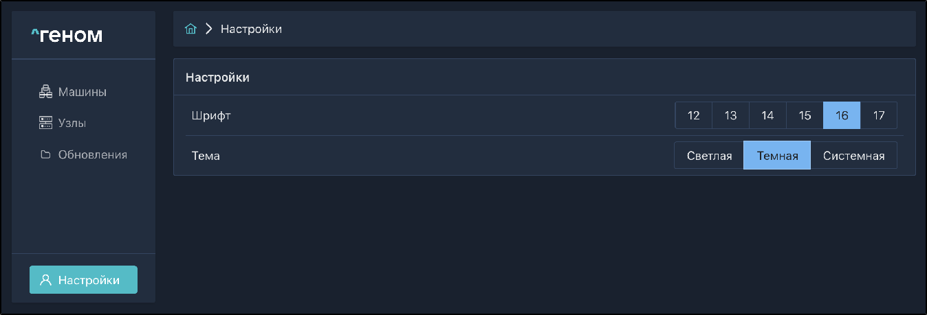 В настройках можно изменить размер шрифта и тему оформления.