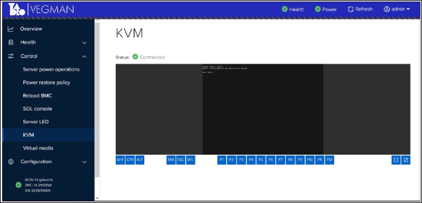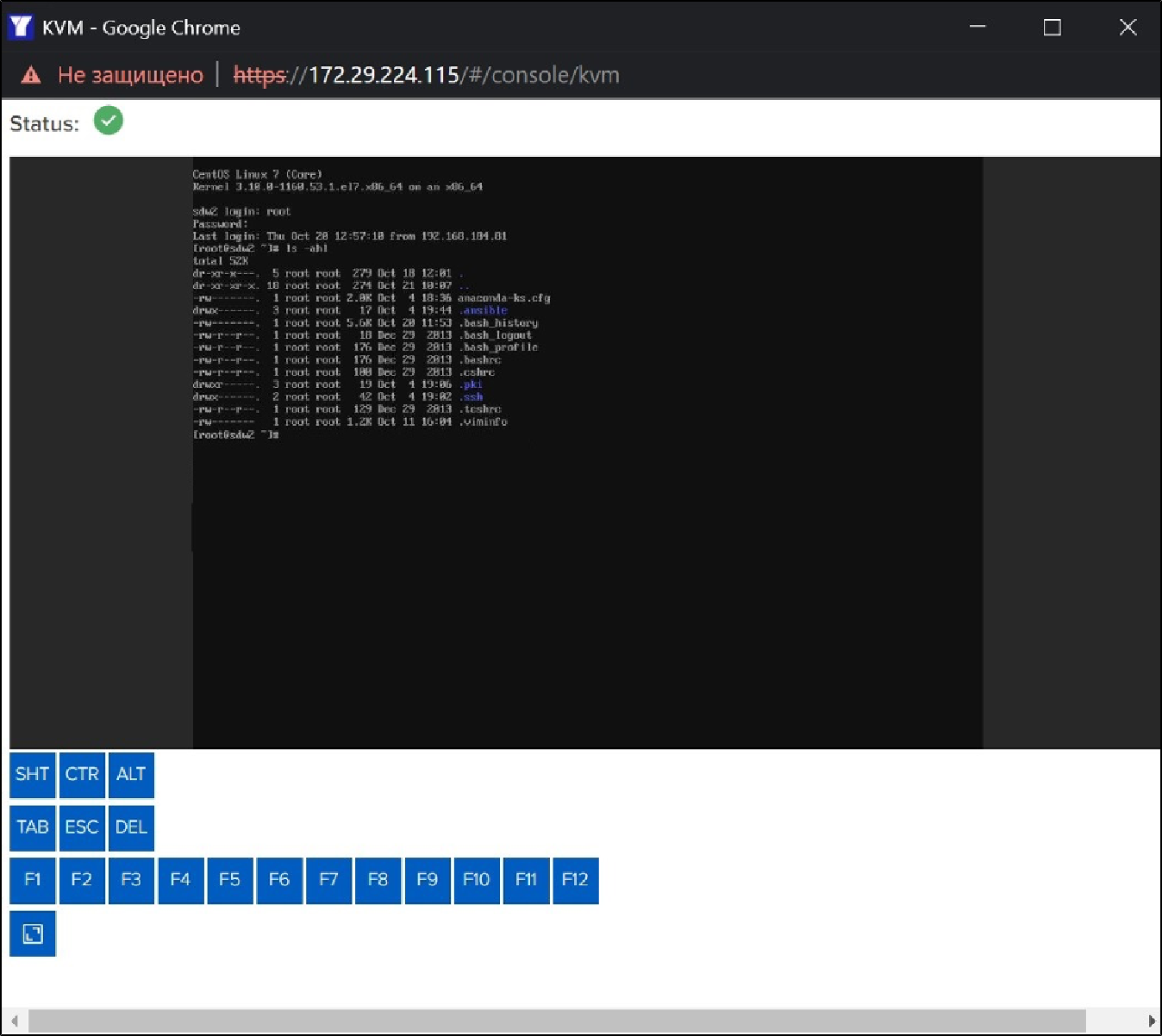 Запустится веб-консоль KVM с командной строкой: