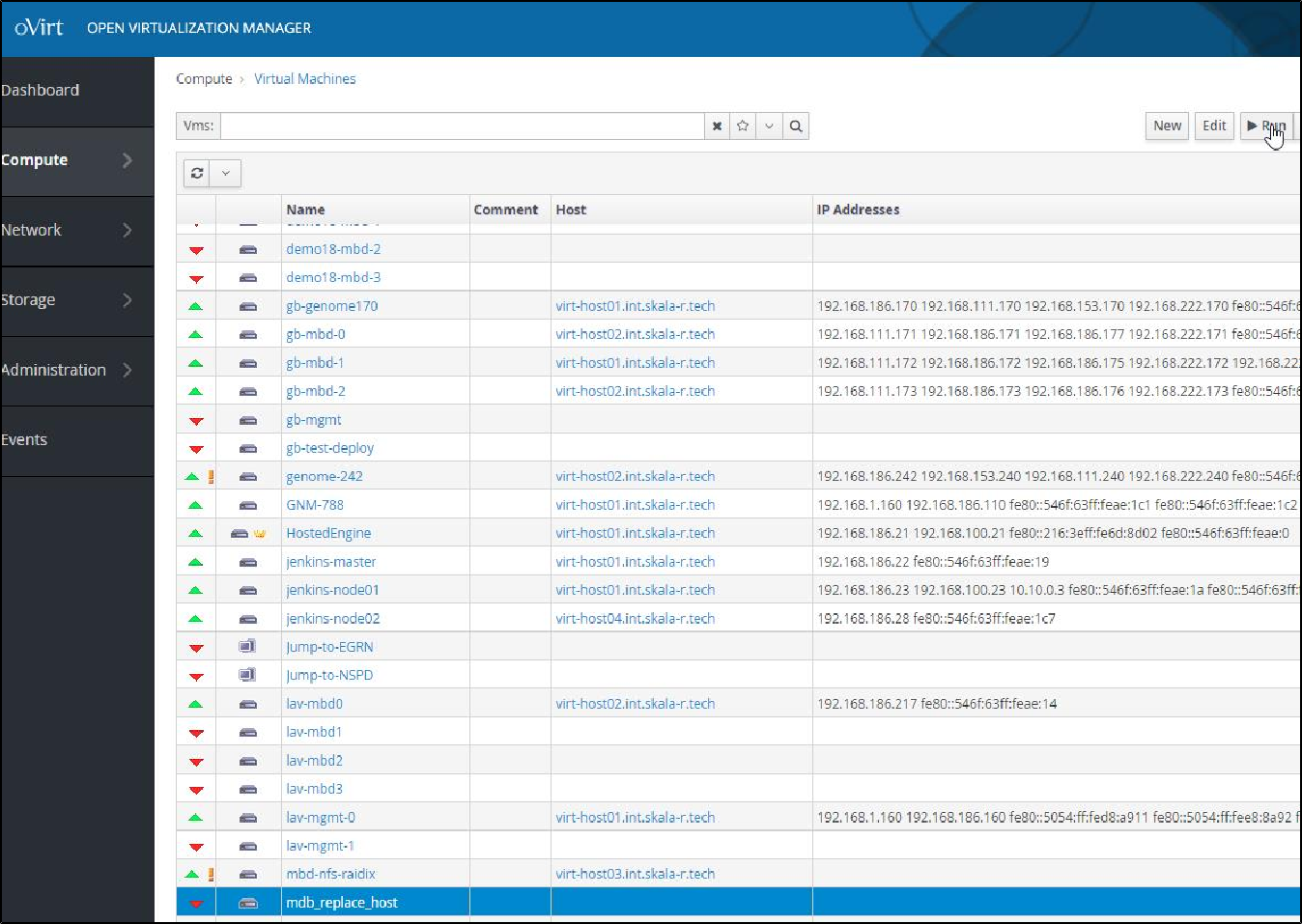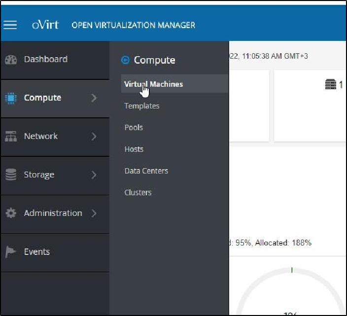 1. Открыть консоль управления виртуальными машинами OVirt, раздел "Administration Portal":