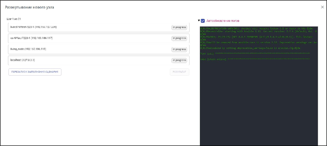 1. Нажать кнопку . Появится окно развертывания нового узла: