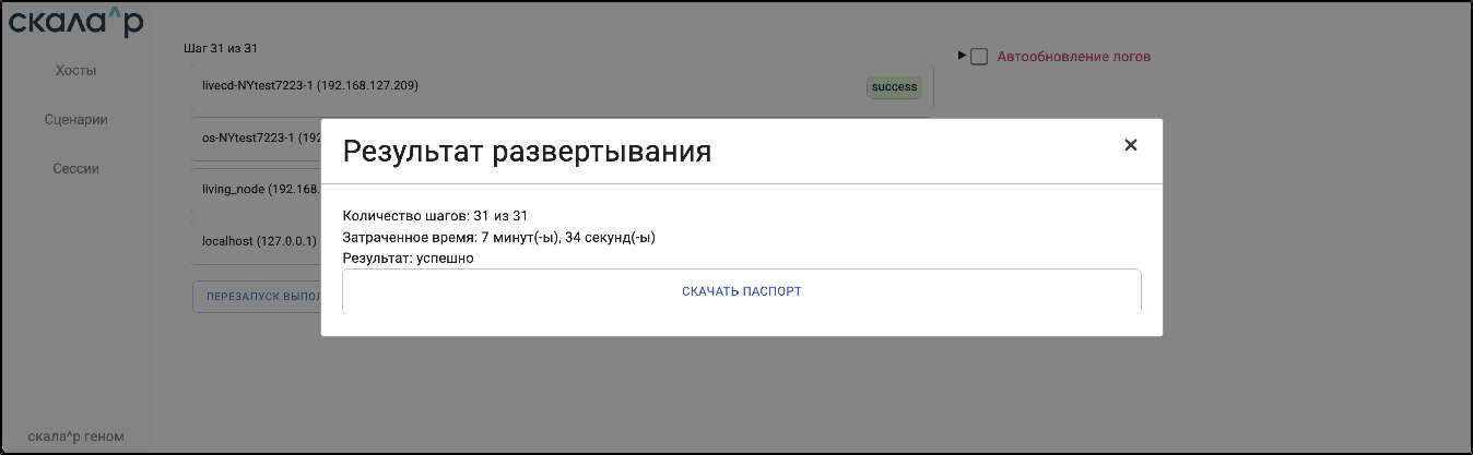 • установка загруженных из ПО «Скала^р Геном» обновлений; изменение сетевой конфигурации;