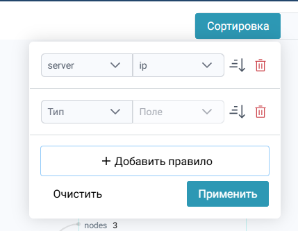 Для сортировки объектов используйте кнопку Сортировка. В появившемся окне задайте одно или несколько правил сортировки: