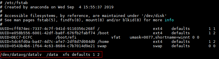 Создайте файловую систему (в качестве примера используется xfs от имени пользователя root; создайте файловую систему в соответствии со своими требованиями). Если для диска была создана файловая система, при выполнении этой команды отобразится сообщение об ошибке. Можно использовать параметр -f для принудительного создания файловой системы.