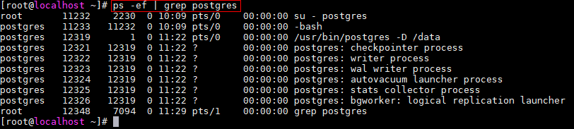 Если отображается следующая информация, процессы PostgreSQL запущены.