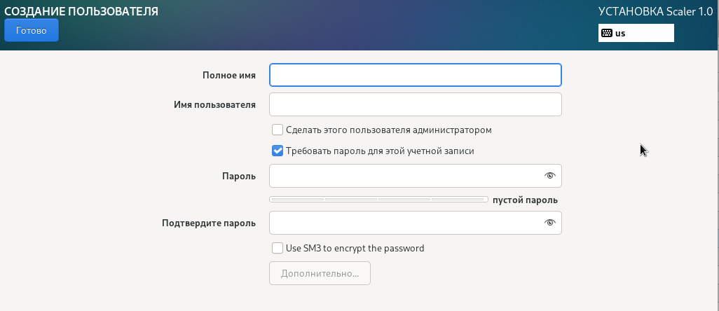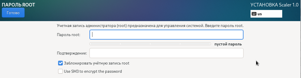 В режиме Минимальной установки устанавливаются не все пакеты доступные на установочном образе продукта. Если по завершению установки продукта потребуется доустановить дополнительный программный пакет, вы можете подключить установочный образ продукта в качестве репозитория программного обеспечения и провести штатную доустановку необходимых программных компонентов используя встроенный в продукт менеджер программных пакетов именуемый DNF .