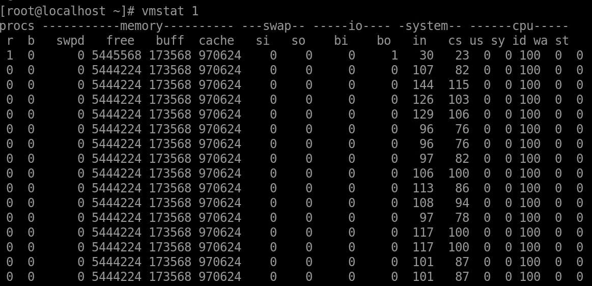 - vmstat: динамически отслеживает использование системных ресурсов и проверяет, какая фаза потребляет больше всего таких ресурсов. Можно выполнить команду vmstat -h для просмотра параметров этой команды. Пример.