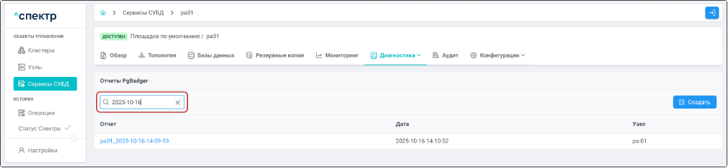 - на странице “Сервисы СУБД” справа от статуса сервиса, для которого были изменены и сохранены без применения параметры PostgreSQL, отображаются индикаторы необходимости перезагрузки конфигурации (reload)