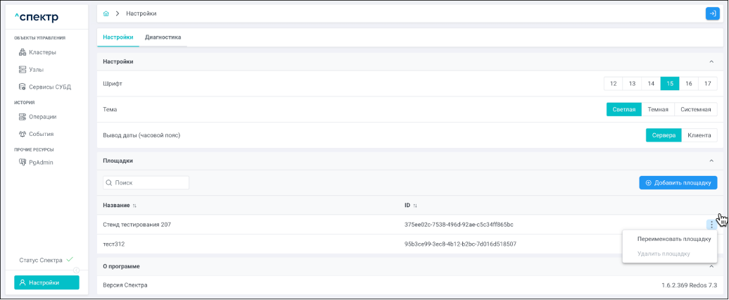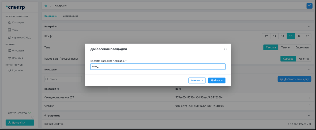 Площадка - физическое место размещения узлов кластера, указывается при импорте.
