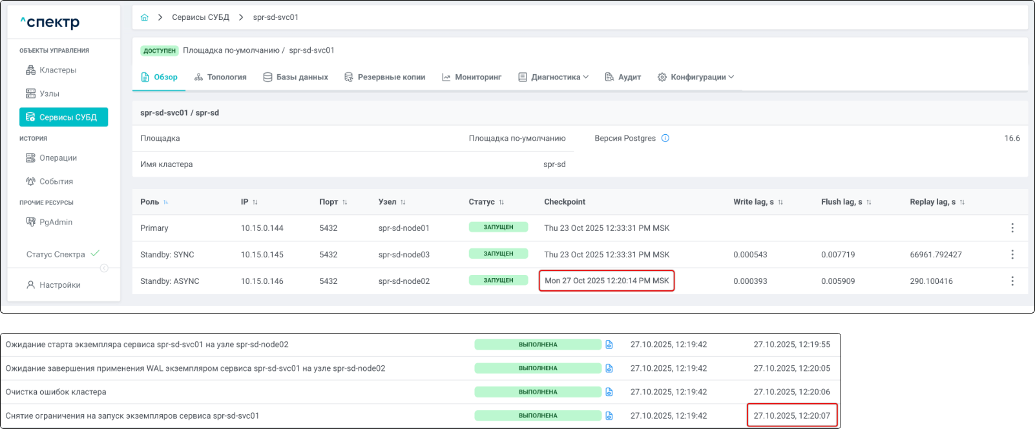 - Управление сервисами СУБД в кластере;