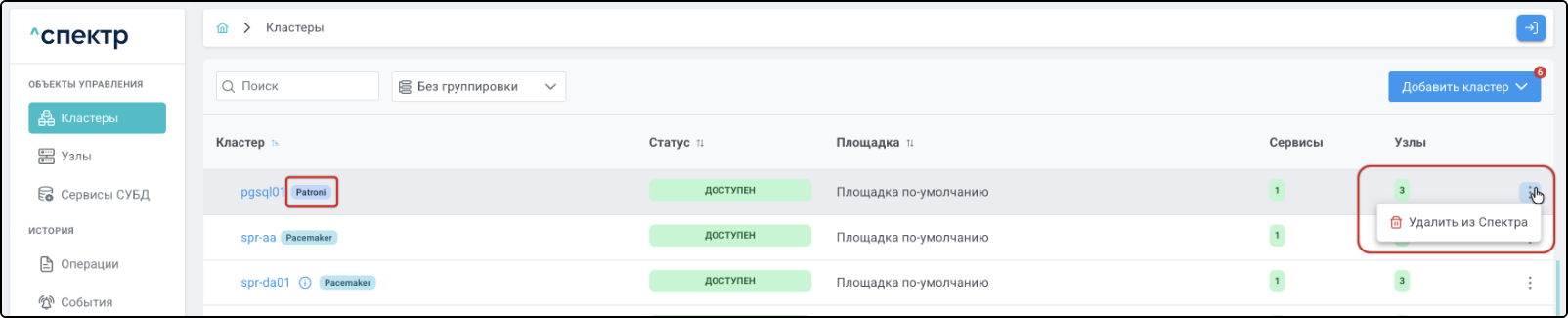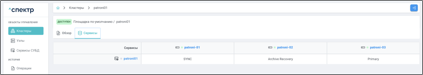 Добавлена поддержка кластеров Patroni: импорт, отображение статуса, топологии и настроек: