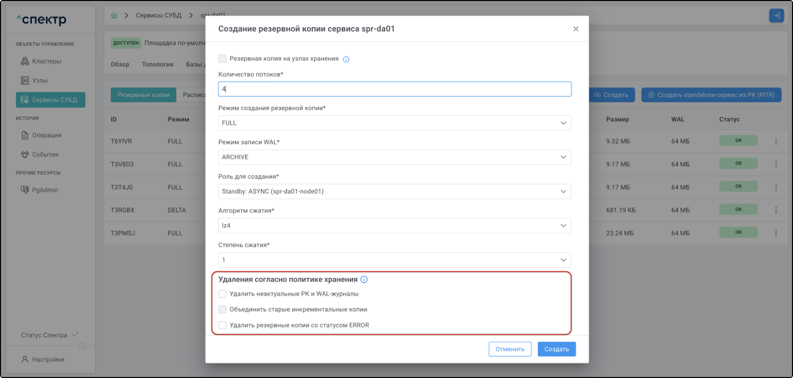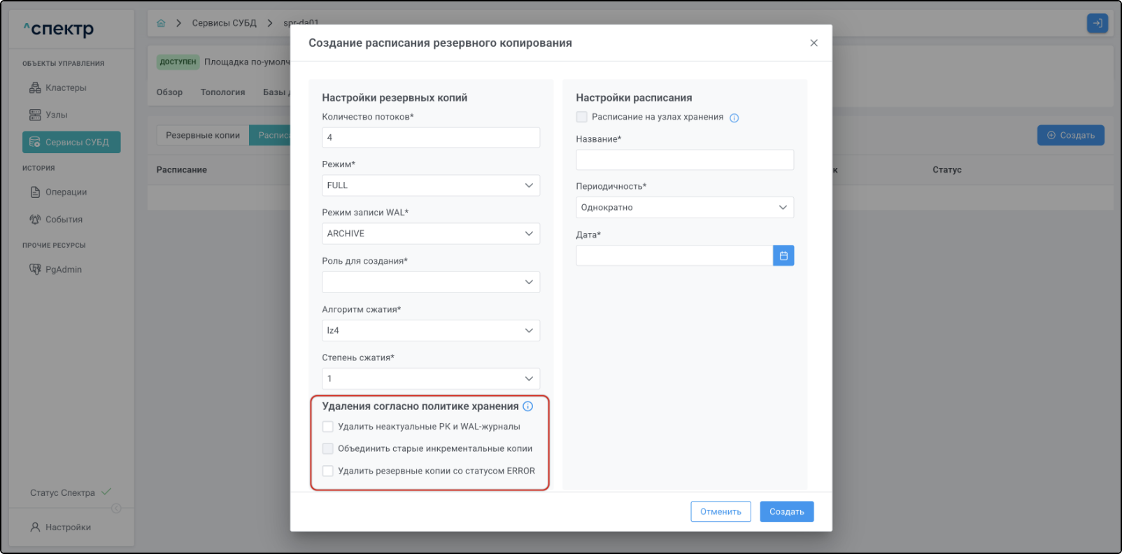 Добавлена функция удаления устаревших или ошибочных резервных копий и архивных WAL-файлов по расписанию и по запросу.