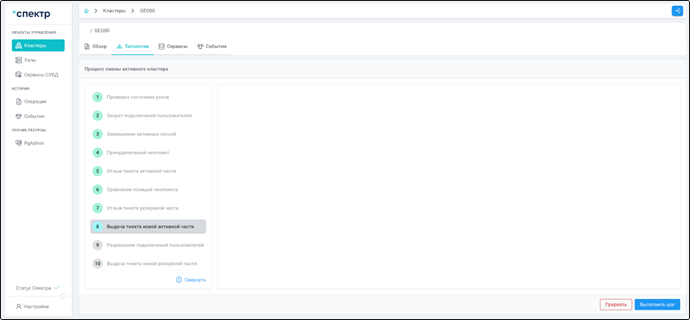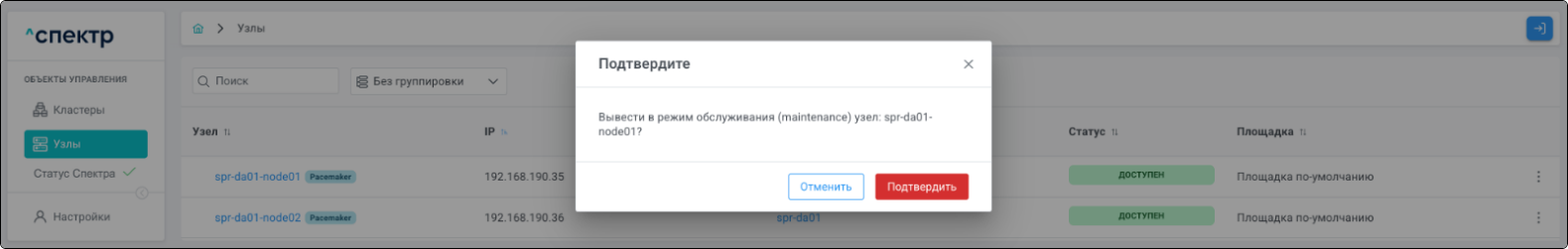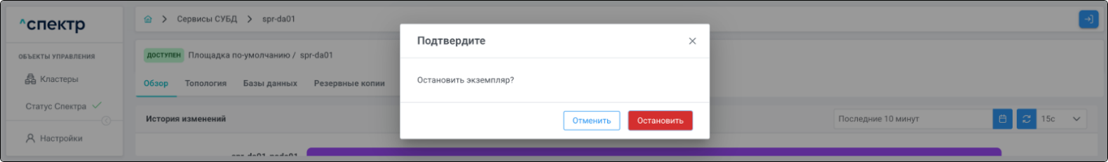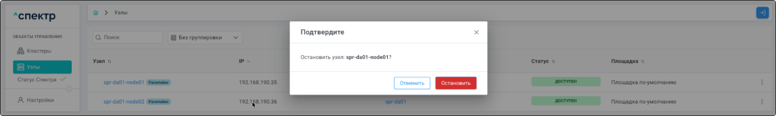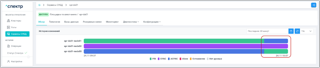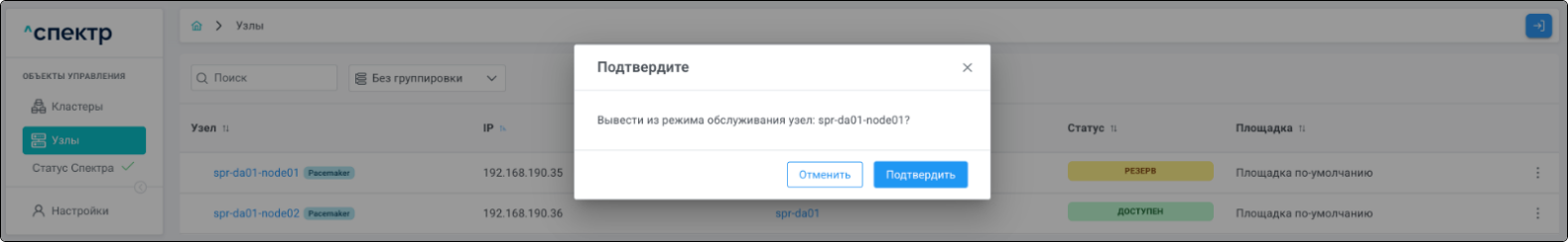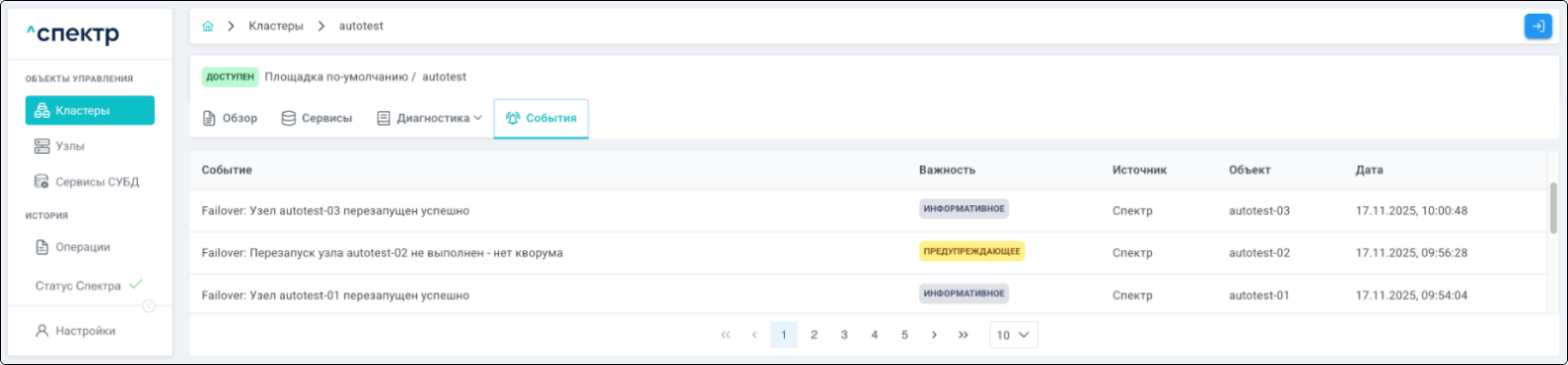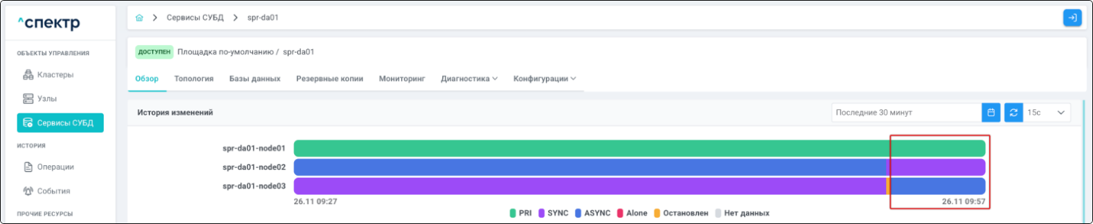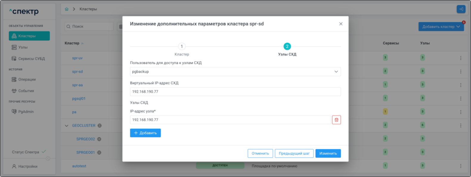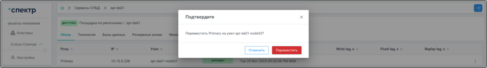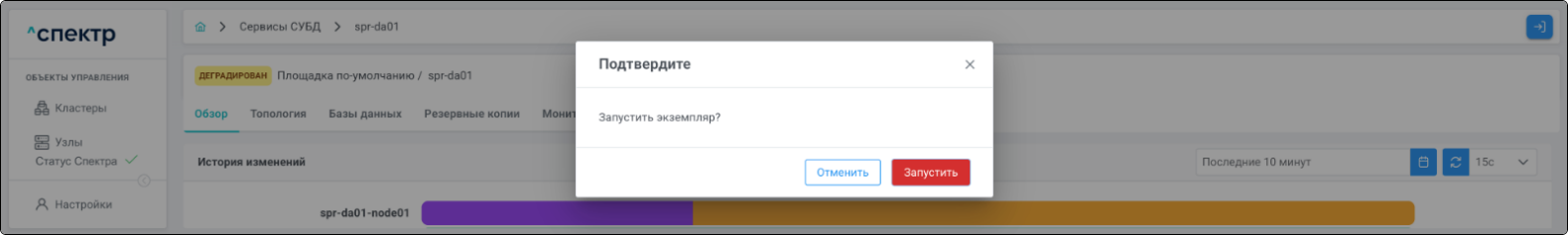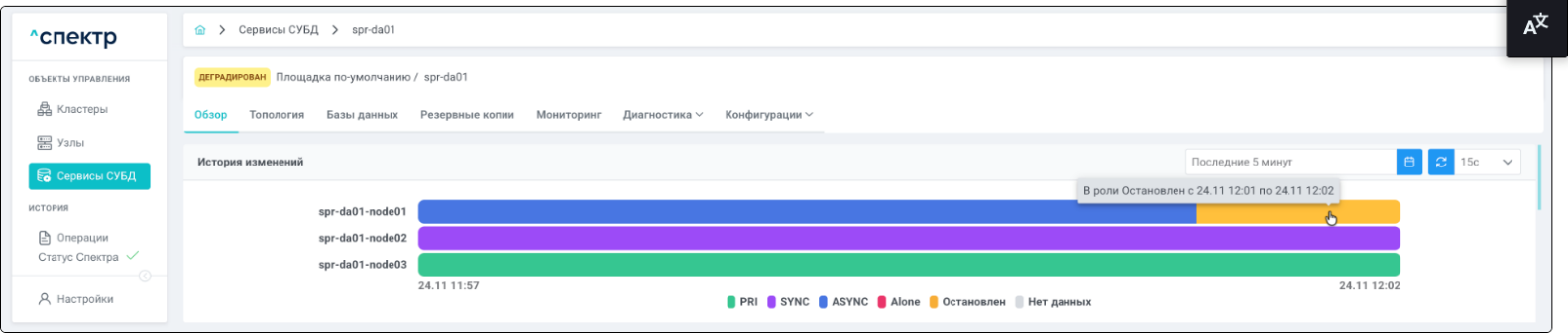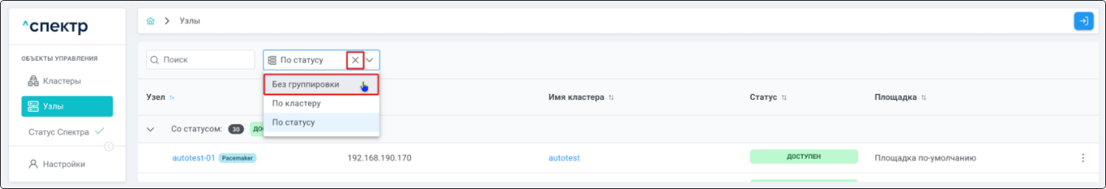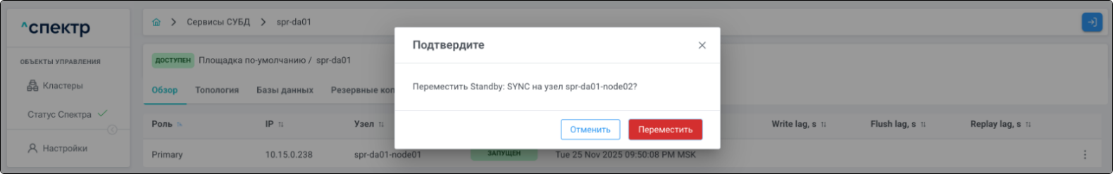 | Кластер | Объект управления верхнего уровня; группа узлов, на которой запускаются сервисы СУБД. Для обеспечения отказоустойчивости сервисов СУБД используется инструмент Pacemaker/Corosync. |