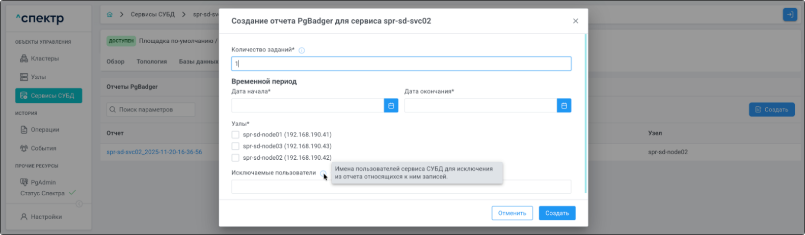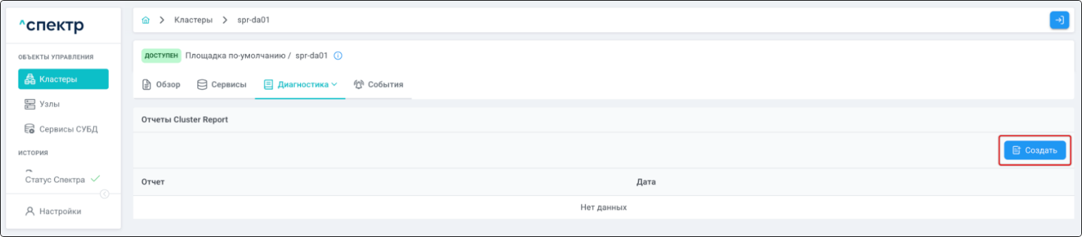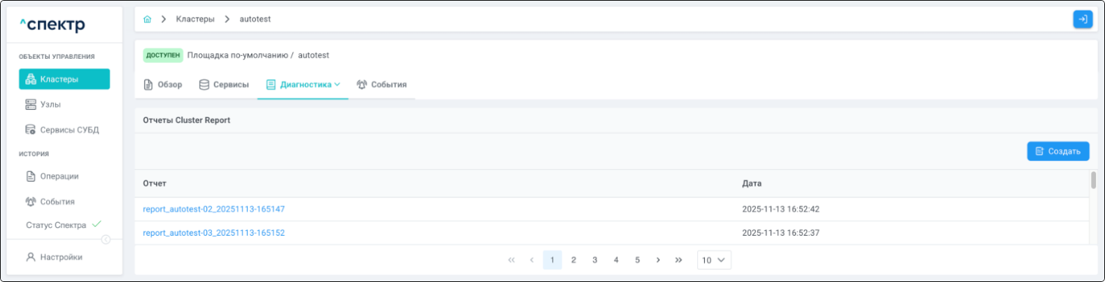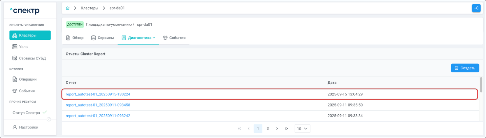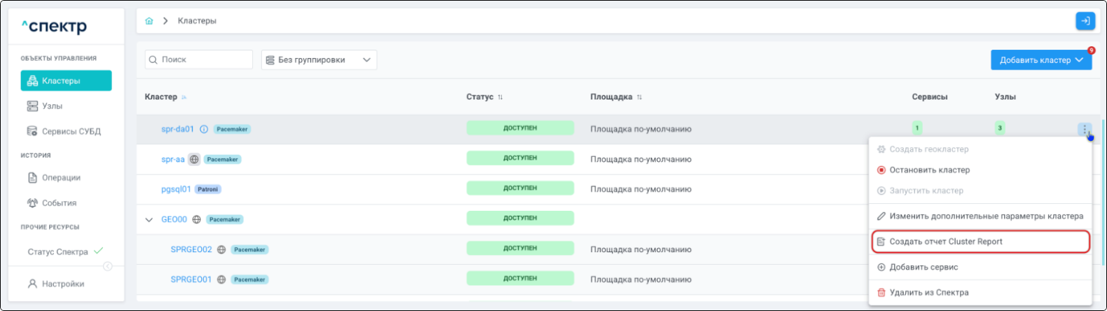 - создания отчётов Cluster Report;