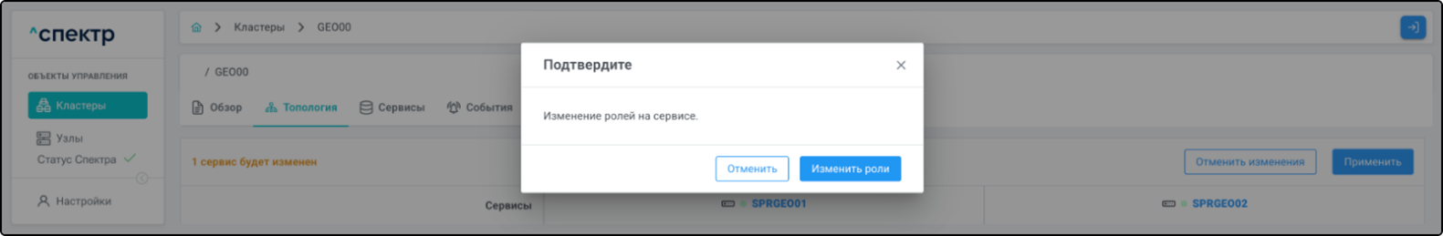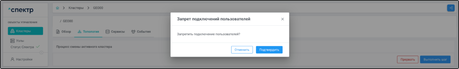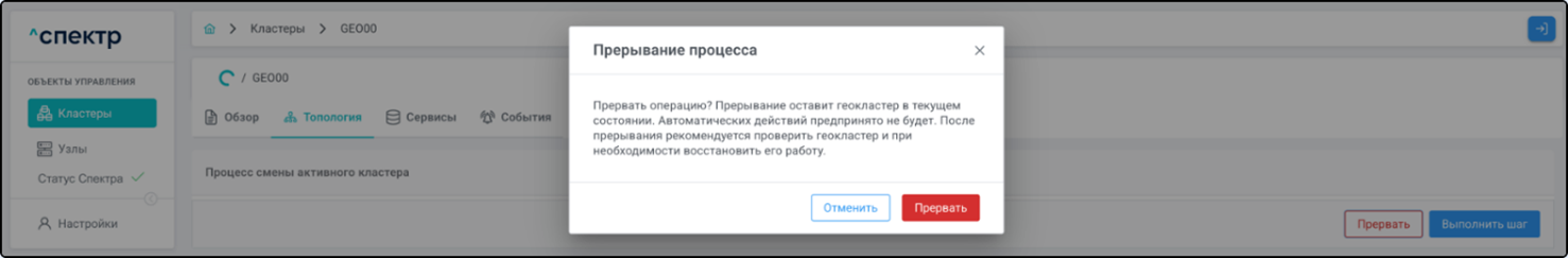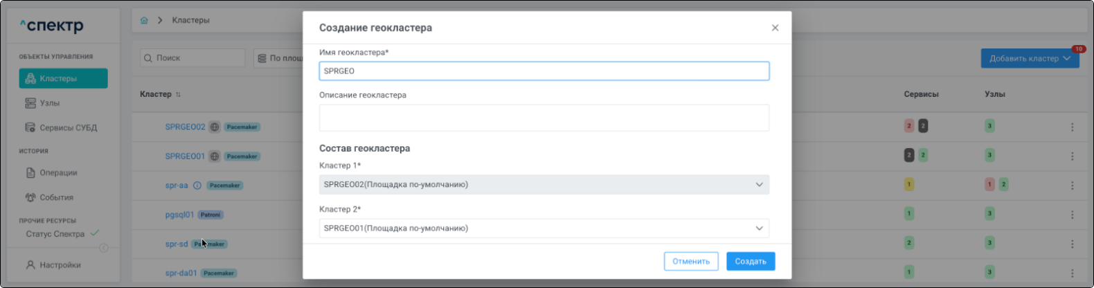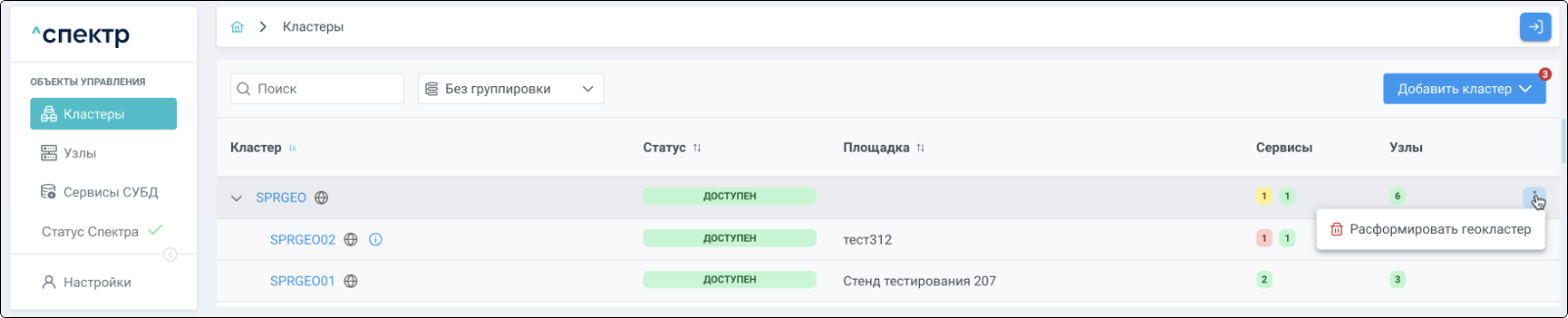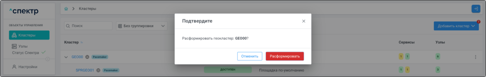 Конфигурирование собственно геокластера “Спектром” не осуществляется. Действия в “Спектре” изменяют только конфигурацию самого “Спектра” и соответствующее отображение объектов в его интерфейсе.