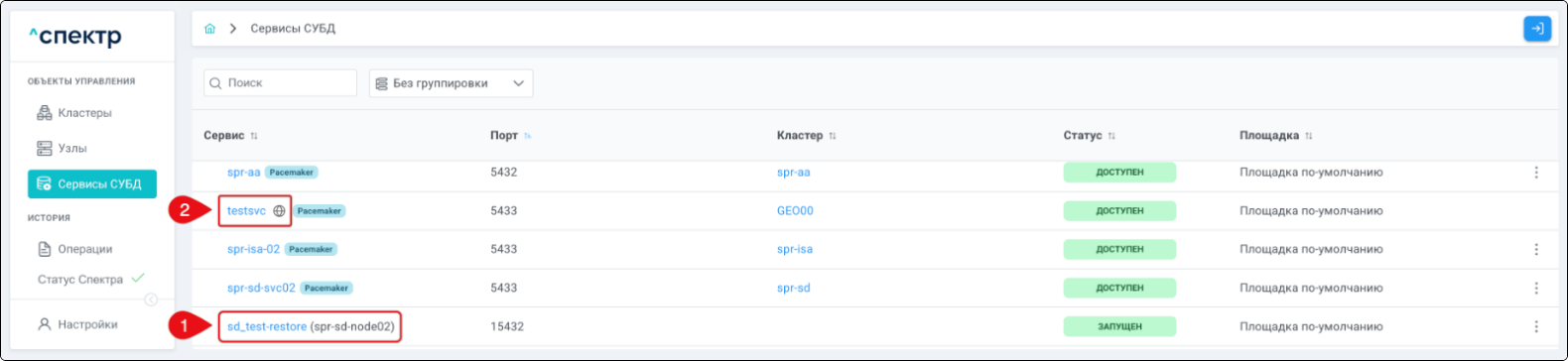 | Сервис СУБД | Целостная служба СУБД, работающая на конкретном кластере. |