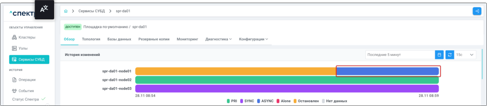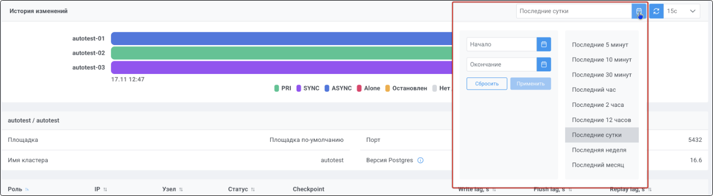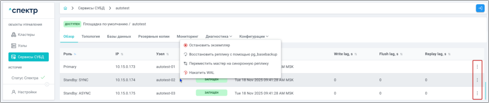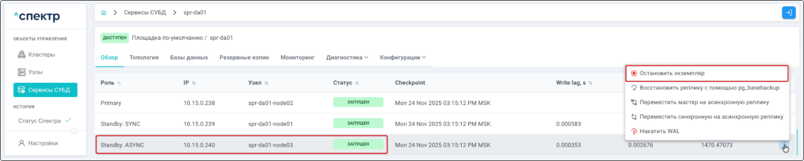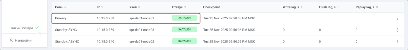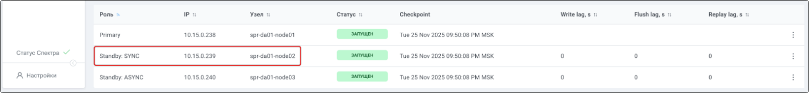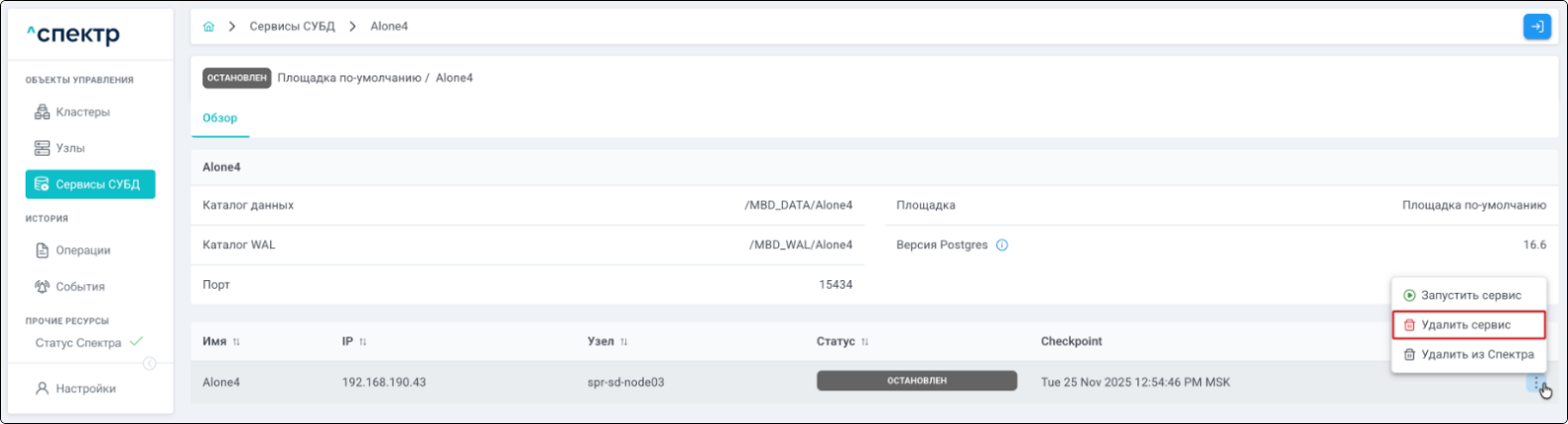 | Standalone-сервис | Одиночный экземпляр PostgreSQL, который не находится под управлением кластерного ПО, но запущен на одном из узлов МБД.П. |