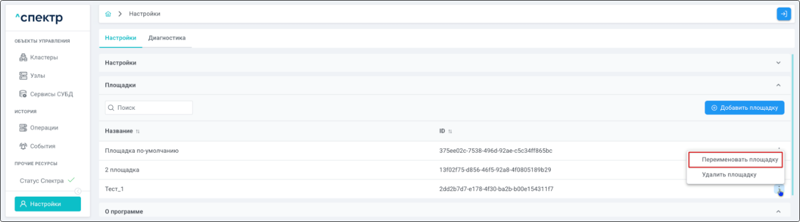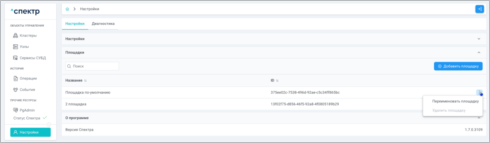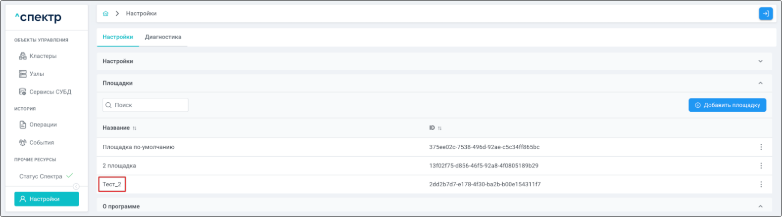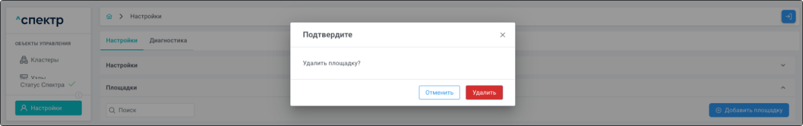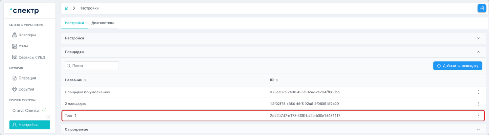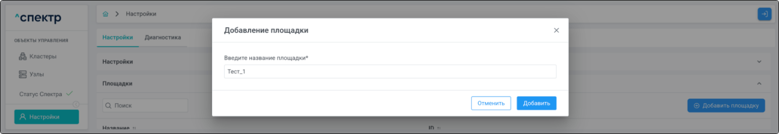 Площадка - физическое место размещения узлов кластера, указывается при импорте.