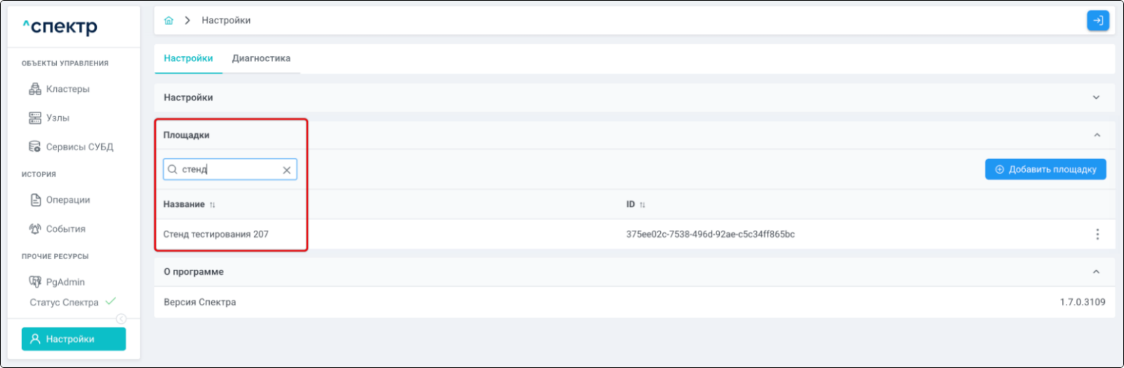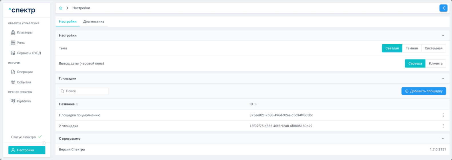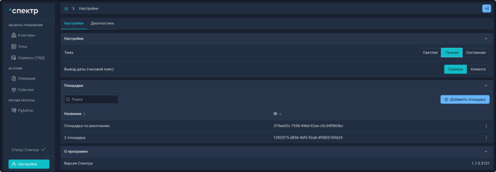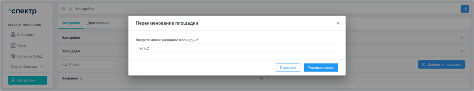 Площадка - физическое место размещения узлов кластера, указывается при импорте.