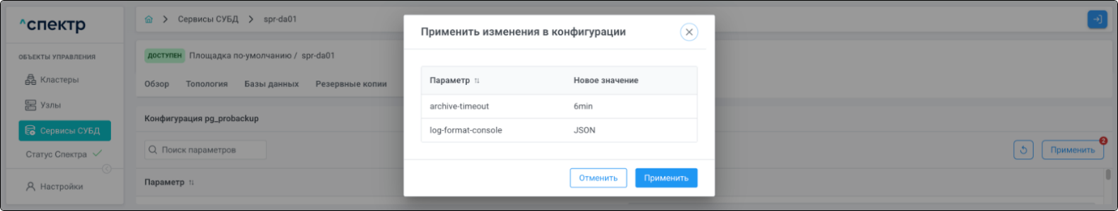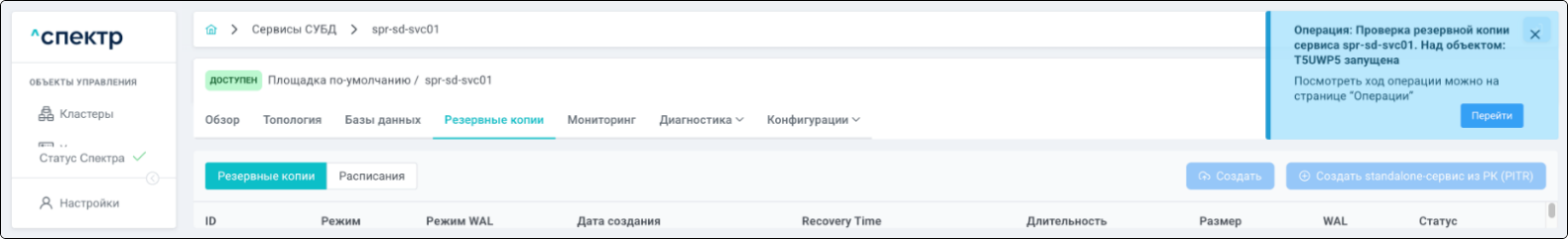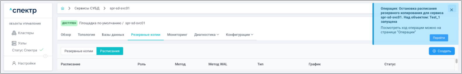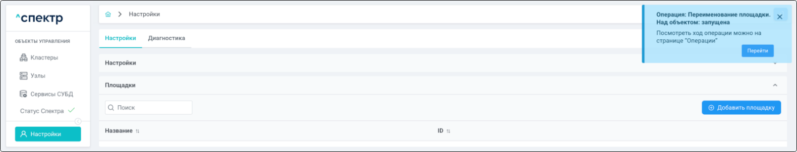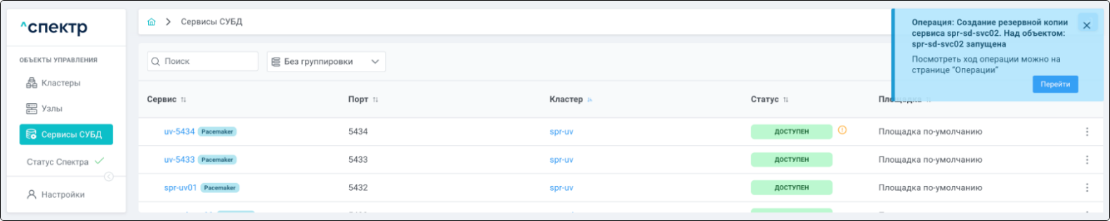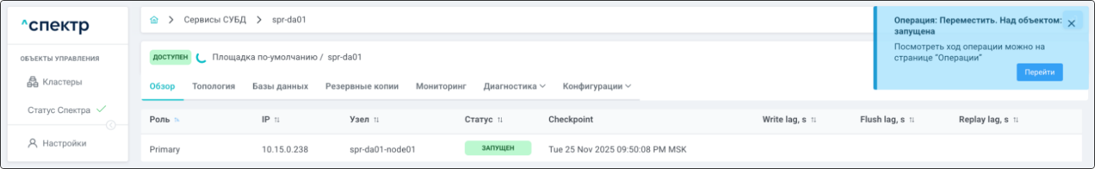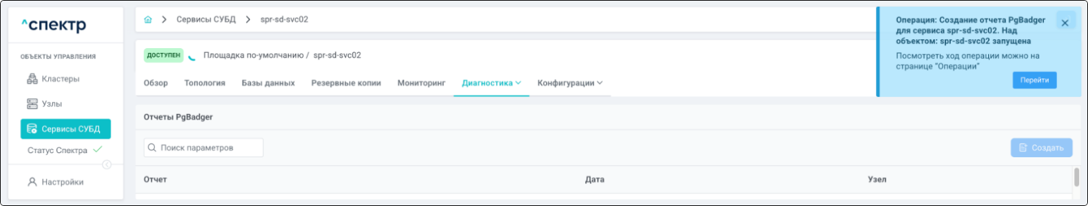 В правом верхнем углу страницы появится всплывающее сообщение о запуске операции редактирования pgBouncer:
