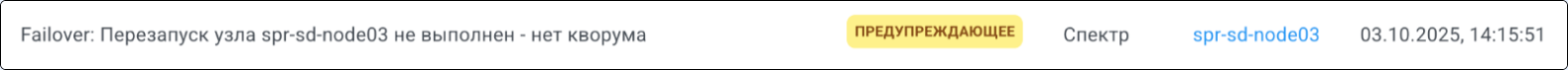 | Кворум | Кластер имеет кворум при достаточном количестве работоспособных узлов кластера. Достаточное количество работоспособных узлов определяется по формуле n > N/2, где n – количество работоспособных узлов, N – общее количество узлов в кластере. |