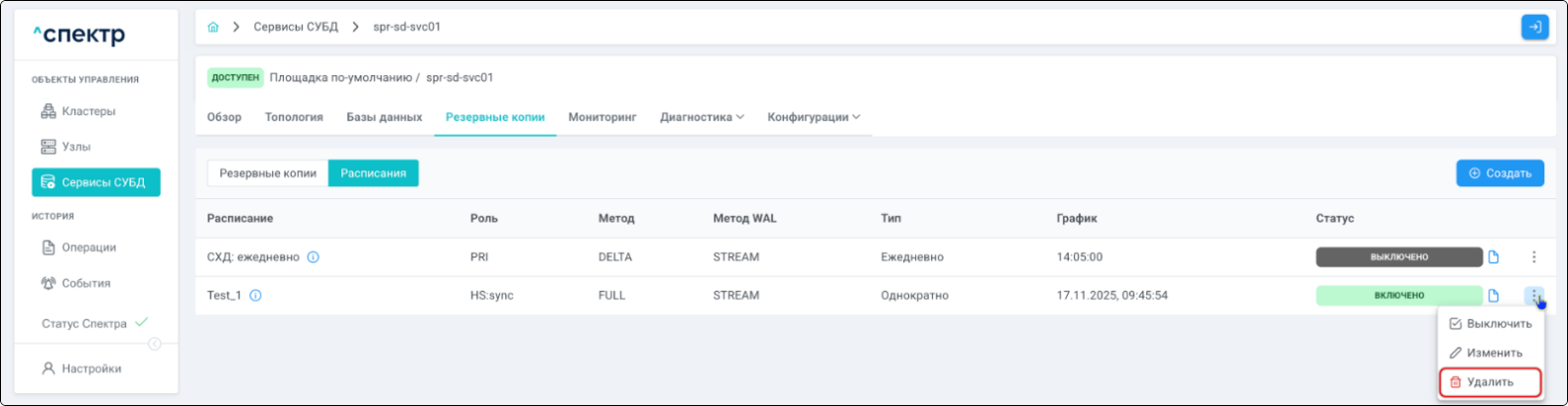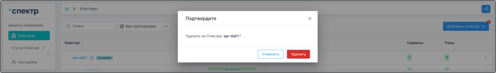 - удаления из Спектра;
