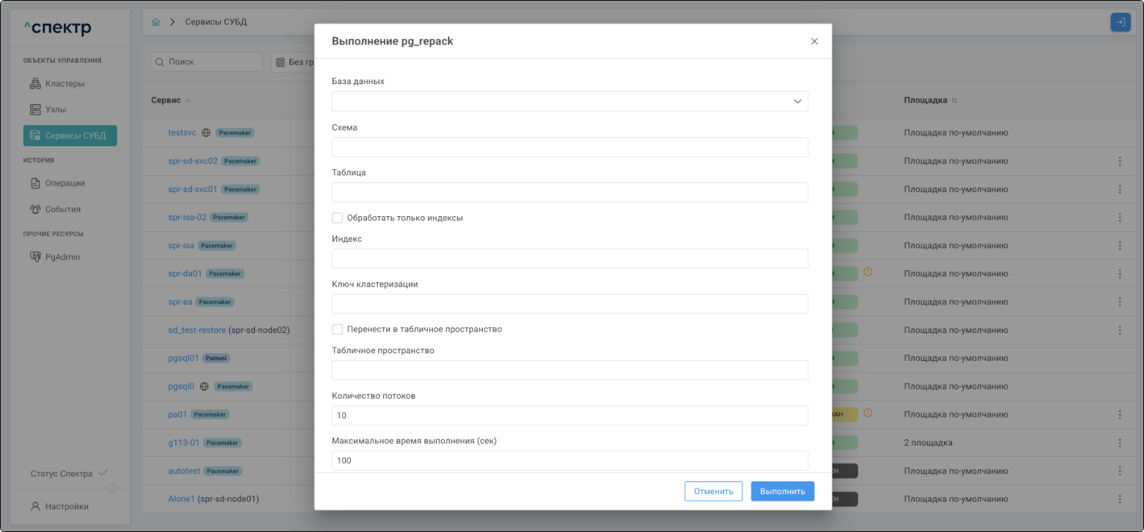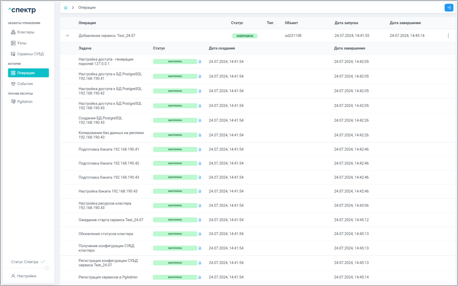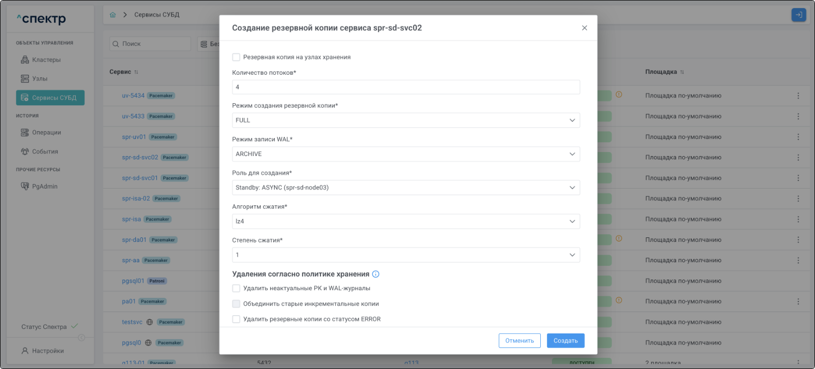 - Управление жизненным циклом кластеров СУБД PostgreSQL;