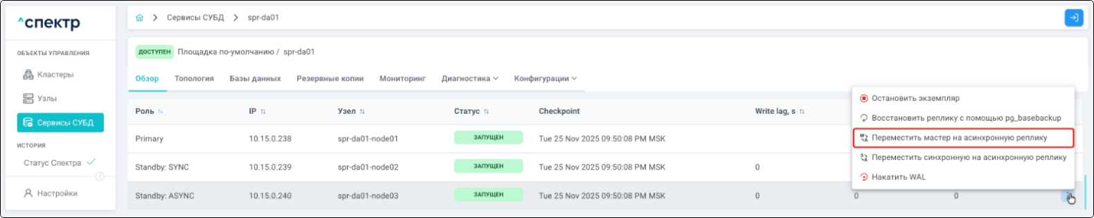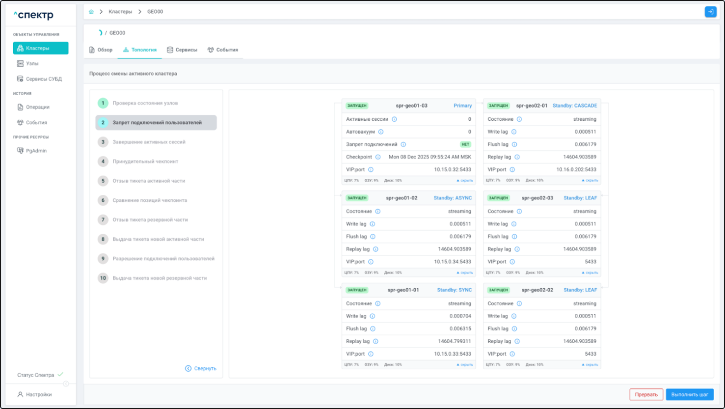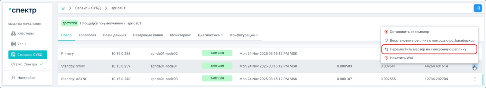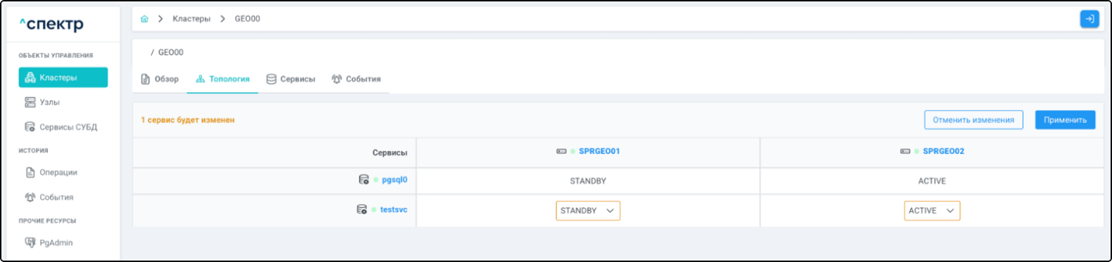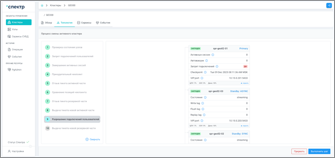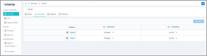 - Управление сервисами СУБД в кластере;