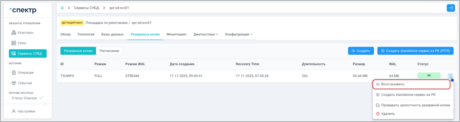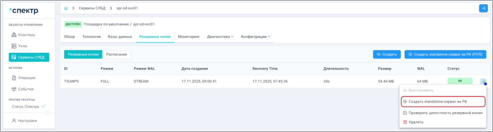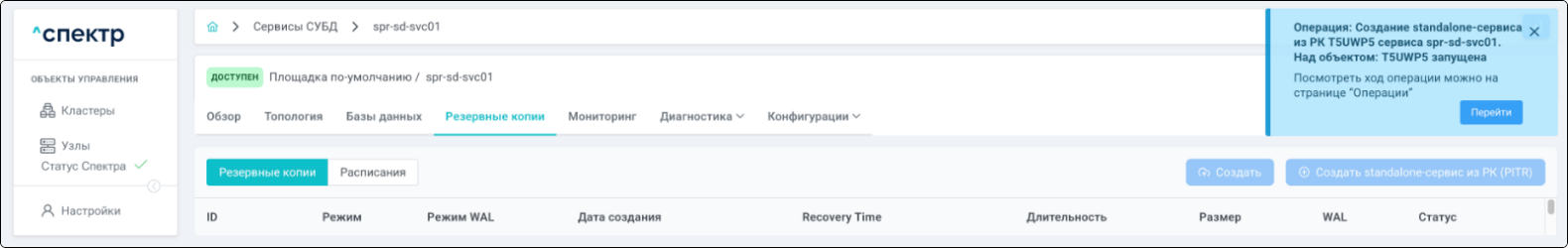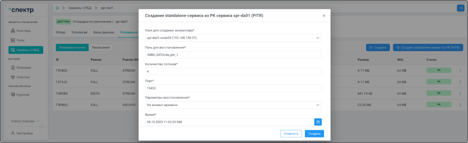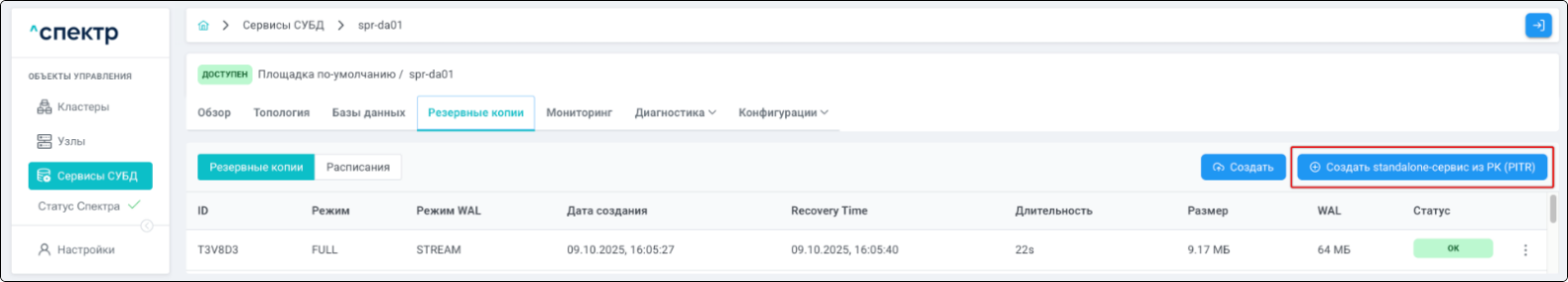 | PITR | Point-In-Time Recovery. Создание standalone-сервиса из резервной копии с указанием на конкретный момент времени, на который актуально восстанавливаемое состояние. |