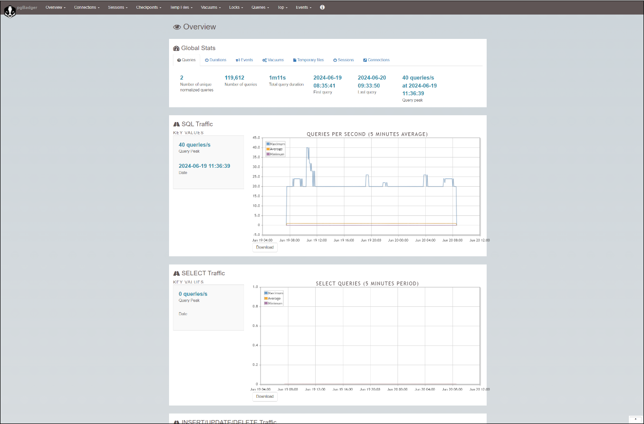| PgBadger | Программа для быстрого анализа журналов PostgreSQL с созданием подробных HTML5 отчётов и графиков с целью выявление потенциальных проблем с БД. |