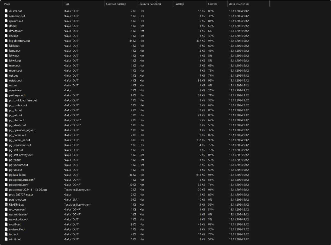 | pg_basebackup | Утилита PostgreSQL, которая позволяет выгрузить данные из всего кластера. Готовая резервная копия будет представлена в виде файла двоичного формата. |