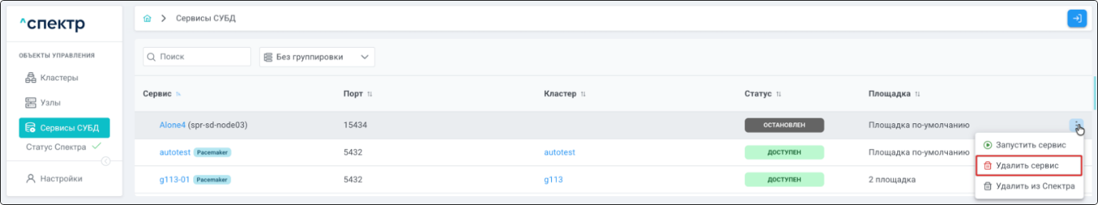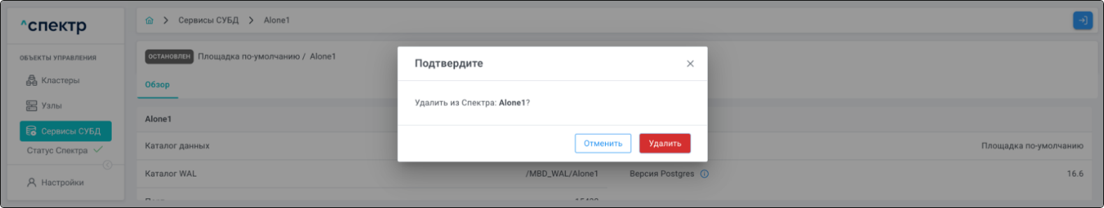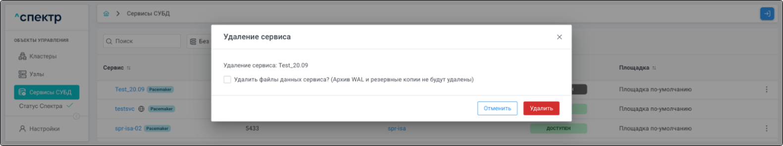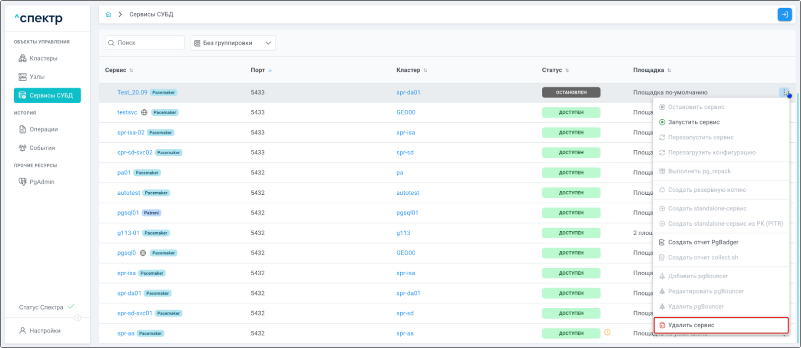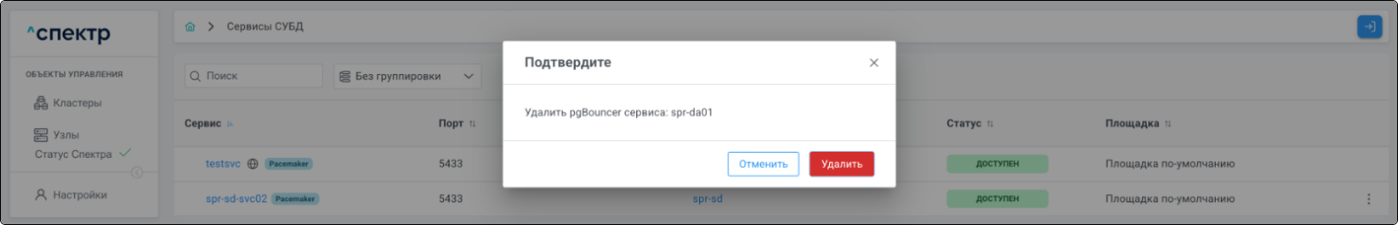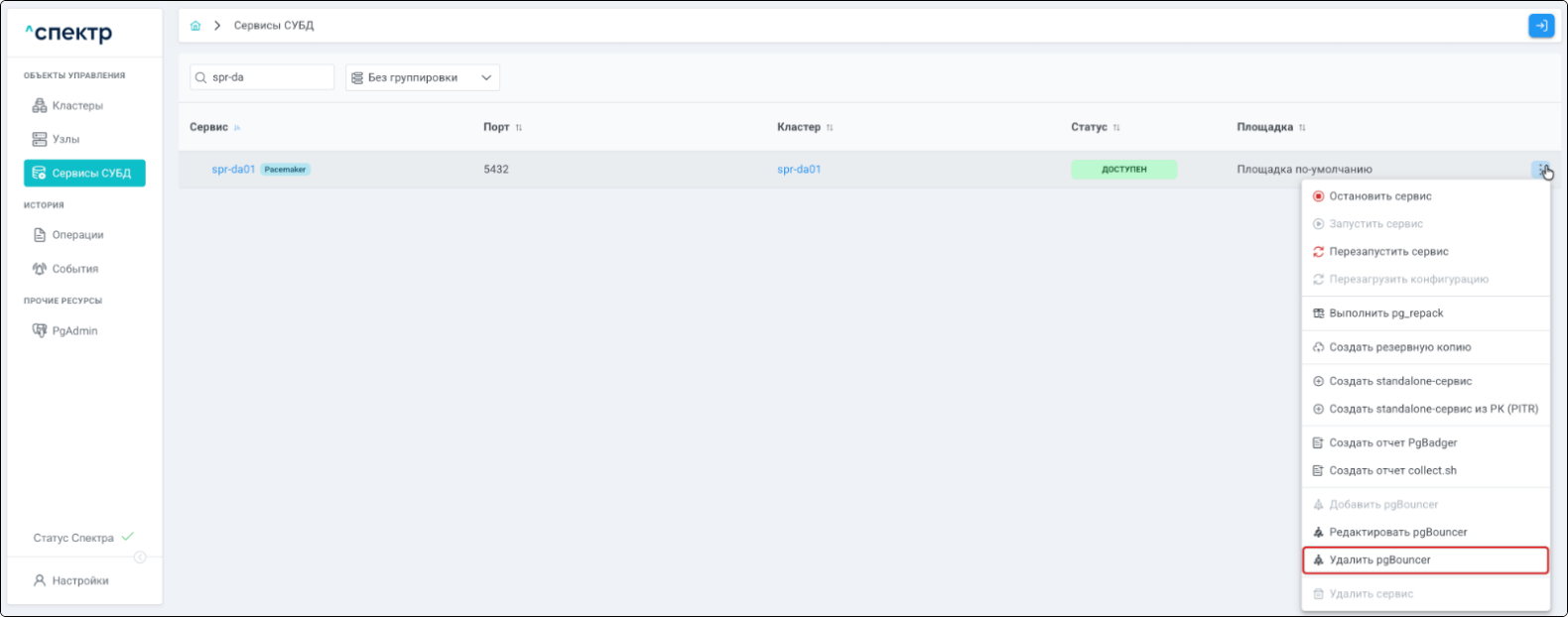 Удаление pgBouncer возможно для сервисов со статусом “ДОСТУПЕН”.